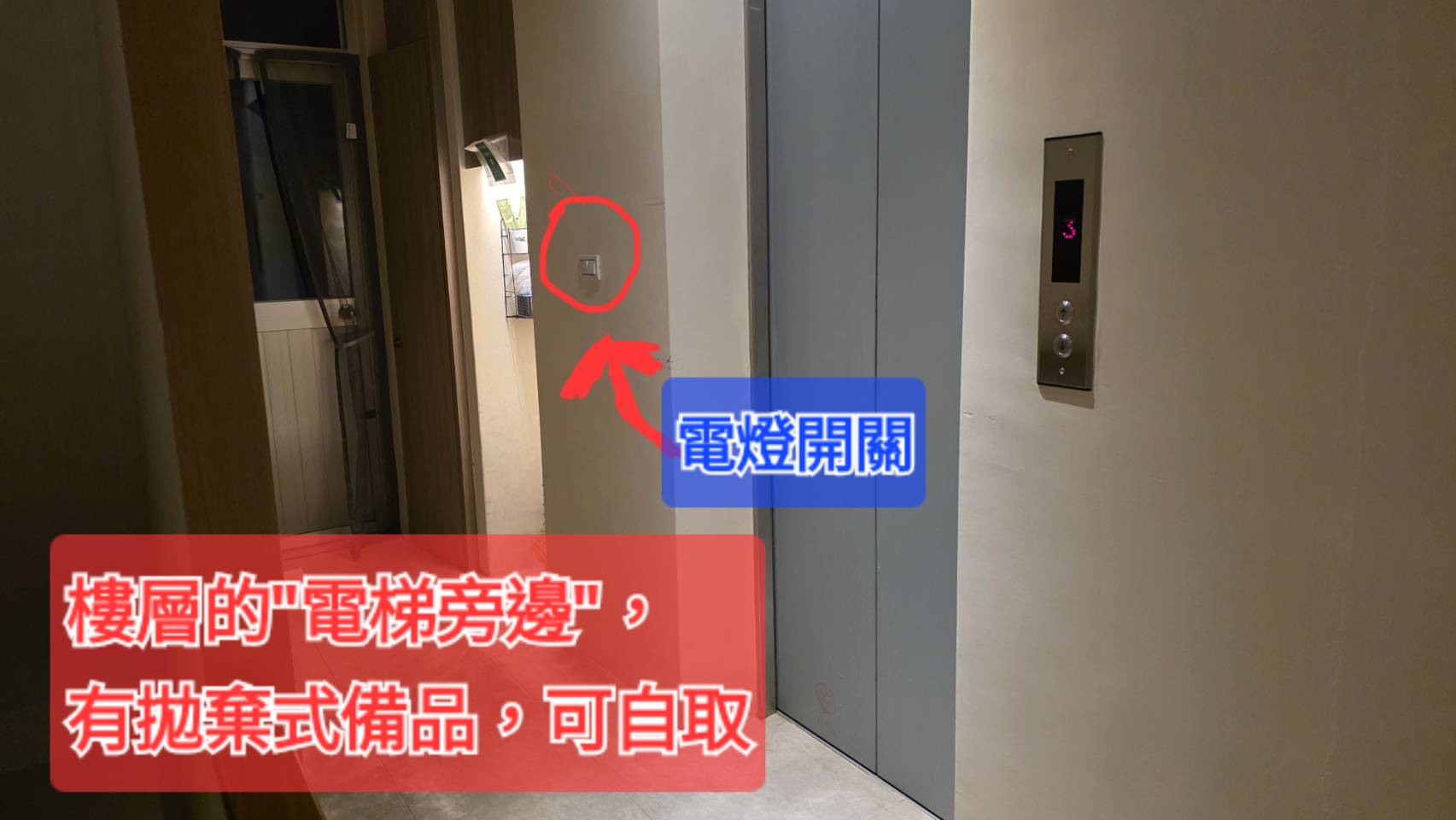 備品自取:在每個樓層的電梯旁邊。